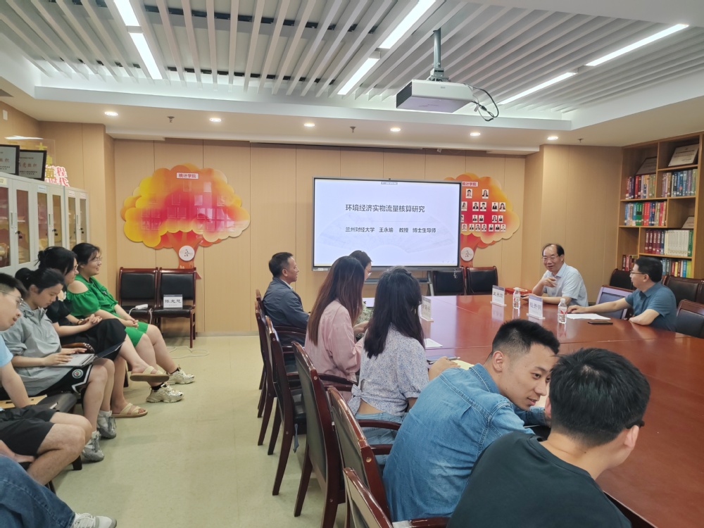 2024年6月21日下午,兰州财经大学王永瑜教授应邀来香蕉视频 开展了以“环境经济流量核算框架研究”为主题的学术讲座。本次讲座在综合楼601会议室举行,由统计与数学学院程开明院长主持。