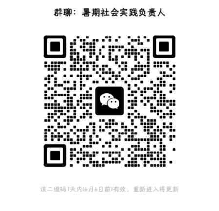 (一)请各实践团队负责人于6月15日20:00前进入暑期社会实践管理系统(//szgqt.xjxj283.net/),申报填写团队相关信息(具体操作流程见附件1)并在实践时间开始之日起,按时进行安全签到。另外,为方便后续事项通知,请各社会实践团队负责人扫码加入微信群。