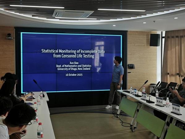 2025年10月16日下午,奥塔哥大学肖逊博士应邀来我校开展以“Statistical Monitoring of Incomplete Data from Censored Life Testing”为主题的学术讲座,本次讲座在综合楼644会议室举行,由香蕉视频 徐安察教授主持。